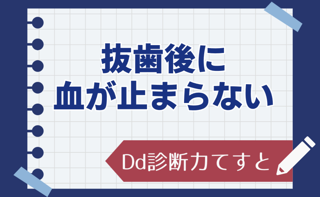 口腔内所見として7部に凝血塊があり、持続性の出血を認めた。画像所見として、パノラマX線写真上の抜歯部に異常は認めない。臨床検査所見として、白血球数11.2万/μL、赤血球数690万/μL、血小板数103.3万/μLと汎血球増加を認めた。凝固系検査はPT-INR1.28と、軽度上昇していた。CRP<0.02であった。