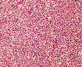 核が腫大し、明るい細胞質をもつ大型の atypical lymphoid cell がび漫性に増生していた(図❺)。
