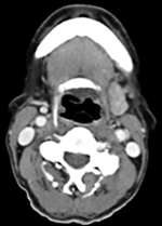 本症例は顎下部に弾性硬の腫脹を認め、腫瘍性病変や歯性感染症が疑われた。しかし、受診時には疼痛の訴えや発熱はなく、身体所見や血液検査からも重度の歯性感染症を疑う所見は認められなかった。腫瘍性病変の可能性も否定できなかったため、生検術を施行した。病理組織学的検査所見では、H-E染色にて筋組織や脂肪組織中に好中球の目立つ炎症性細胞や血管内皮細胞の増生を認め、化膿性炎症による腫瘤形成が疑われた。
