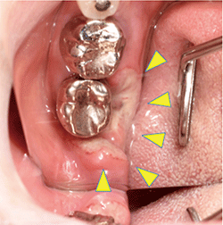 主訴:右側下顎臼歯部の疼痛、潰瘍形成