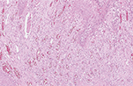 病理組織診断より、表面の1/2に潰瘍形成を認め、潰瘍底も含め、上皮下粘膜固有層~横紋筋層内~横紋筋層を超える軟部組織に、多数の毛細血管が増生し、組織球反応が顕著との診断を得ているので、組織学的分類II型タイプの化膿性肉芽腫と診断できる(図3)。