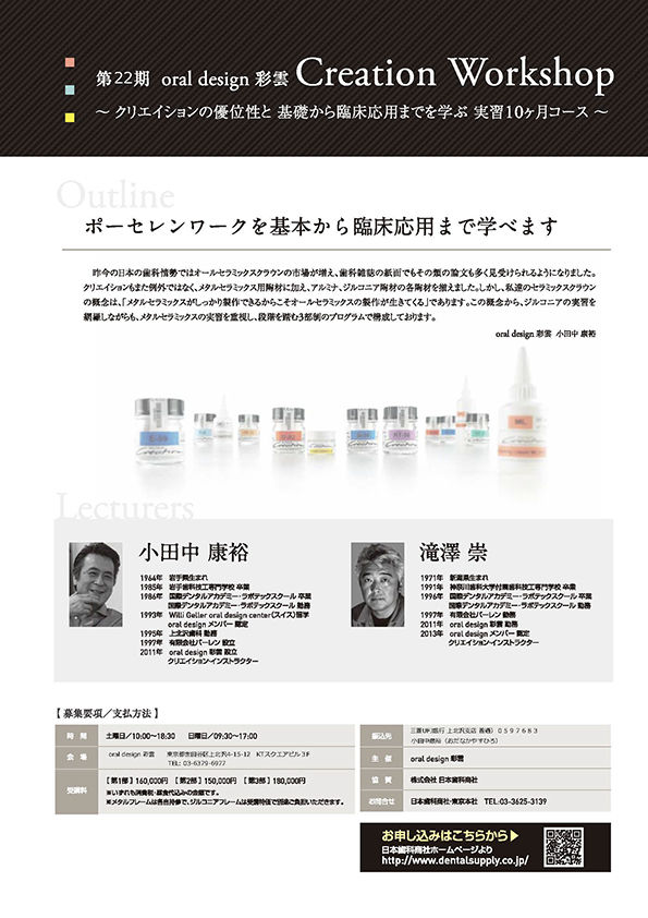 歯科技工士CAD/CAM・技工第22期 oral design 彩雲 Creation Workshop 第三部〔日本歯科商社〕