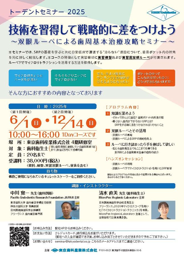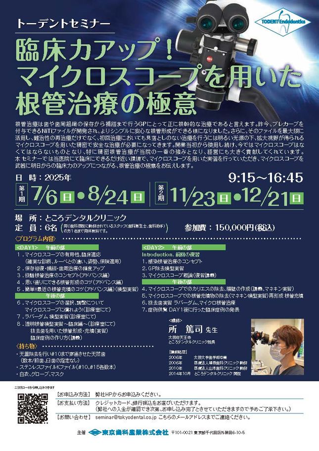 歯科衛生士歯科医師歯科助手歯学部生エンド・歯内療法トーデントセミナー「マイクロスコープ、はじめの一歩」〔東京歯科産業〕