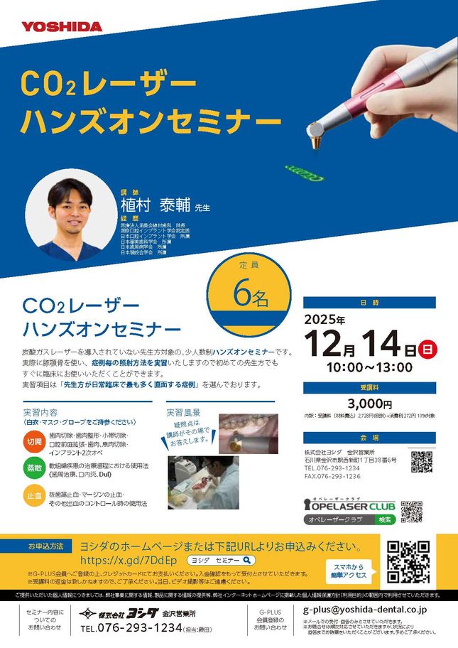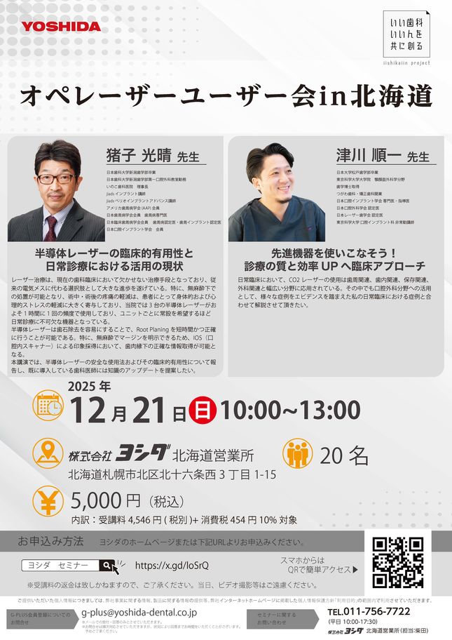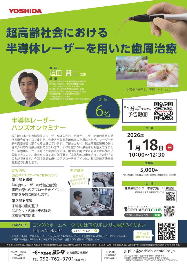 歯科医師高齢歯科・訪問歯科インプラント・口腔外科【東京】ヨシダユーザーミーティング2026 ハンズオンセミナー「光と科学の融合 ~エビデンスから紐解く半導体レーザーの活用法~」〔ヨシダ〕