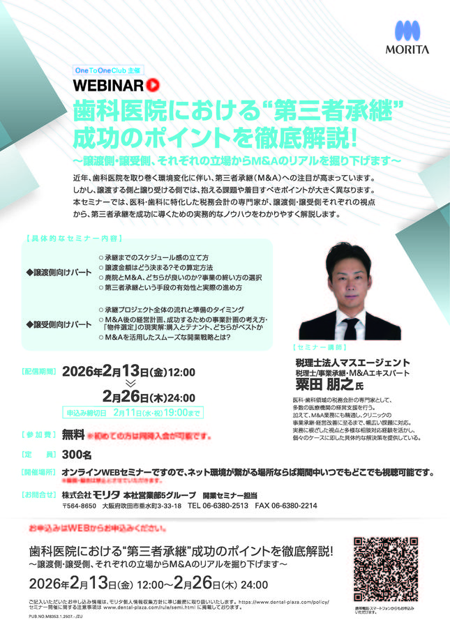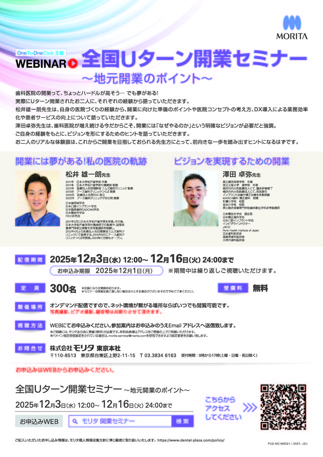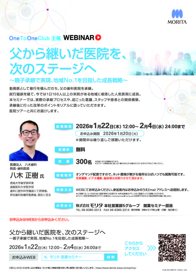 歯科医師歯科全般・その他One To One Club主催 WEBINAR 開業の実践と繁栄の10年 〔モリタ〕