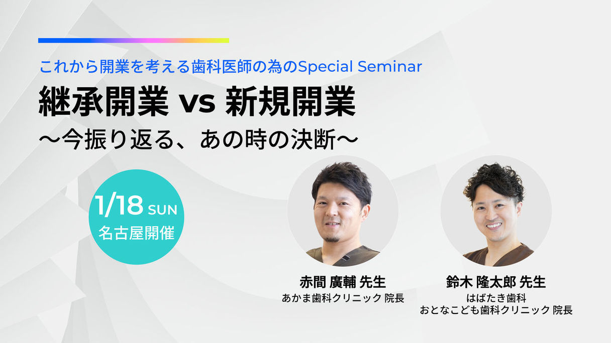 歯科医師歯科全般・その他【名古屋】これから開業を考える歯科医師の為のSpecial Seminar 継承開業 vs 新規開業〔デンツプライシロナ〕