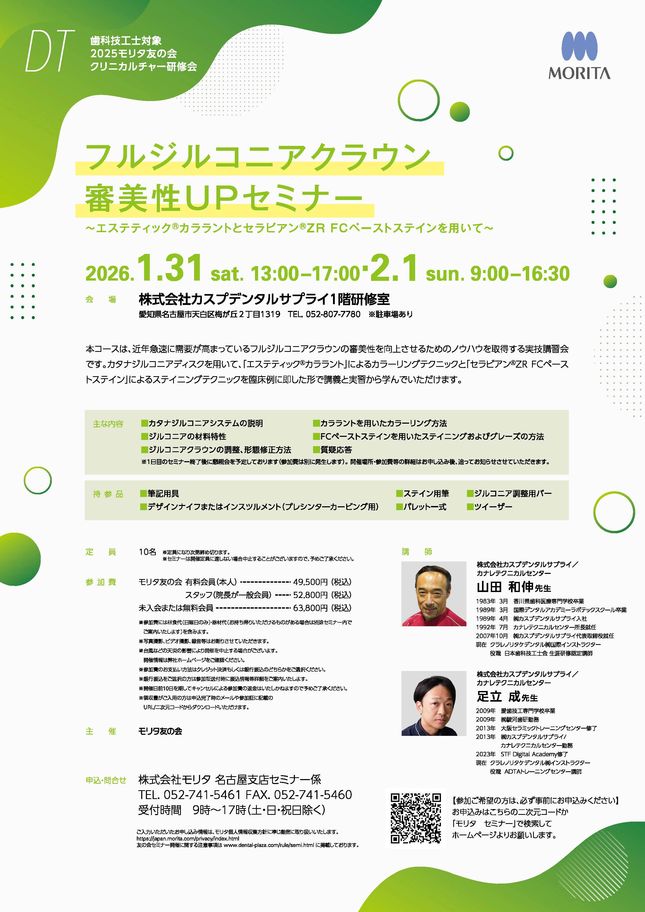 歯科技工士歯科医師矯正歯科咬合・補綴【広島】CAD/CAM材料、脱離ゼロへ 〜チェアサイド接着前処理の勘所〜〔モリタ〕