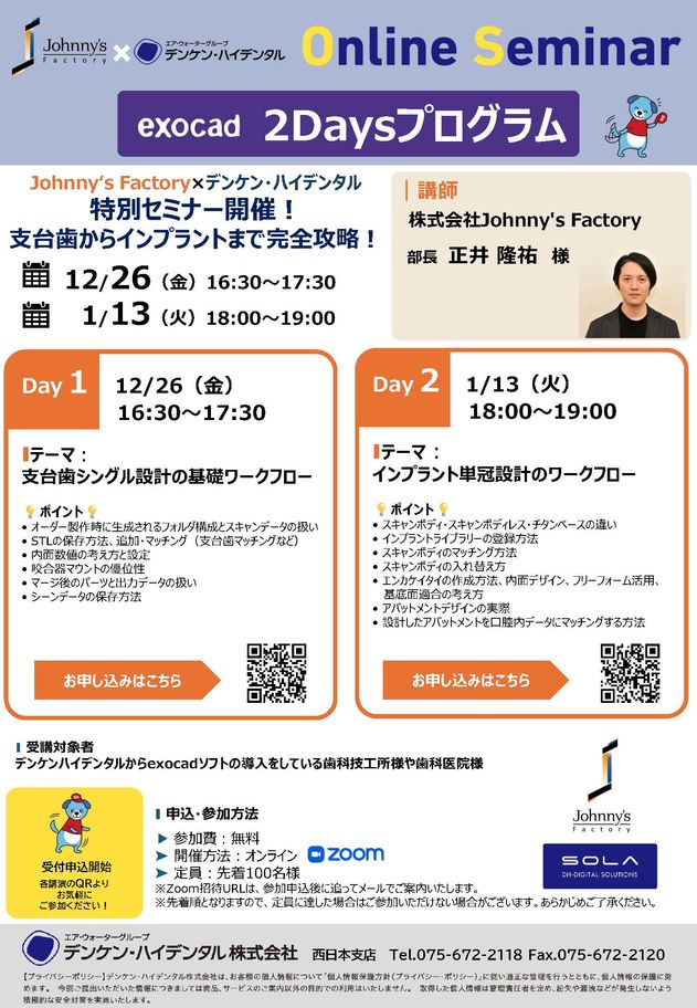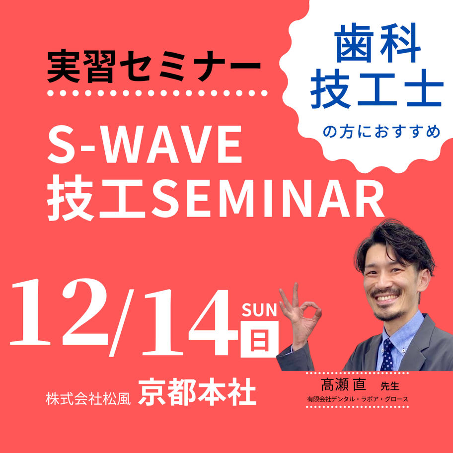 歯科技工士歯科医師エンド・歯内療法咬合・補綴S-WAVE技工セミナー 中野道場 ~デジタルデザインパーシャルコース~ 東京会場 〔松風〕