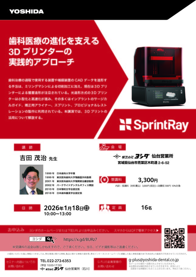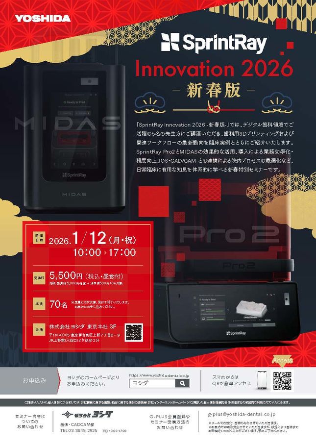 歯科技工士歯科医師CAD/CAM・技工咬合・補綴【東京】SprintRay Innovation 2026 ー新春版ー〔ヨシダ〕