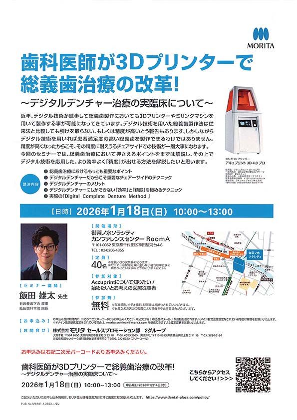 歯科医師CAD/CAM・技工義歯・デンチャー【東京】歯科医師が3Dプリンターで総義歯治療の改革! ~デジタルデンチャー治療の実臨床について~〔モリタ〕