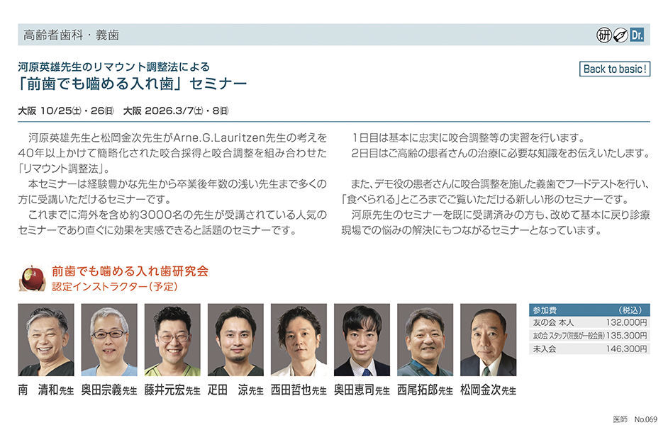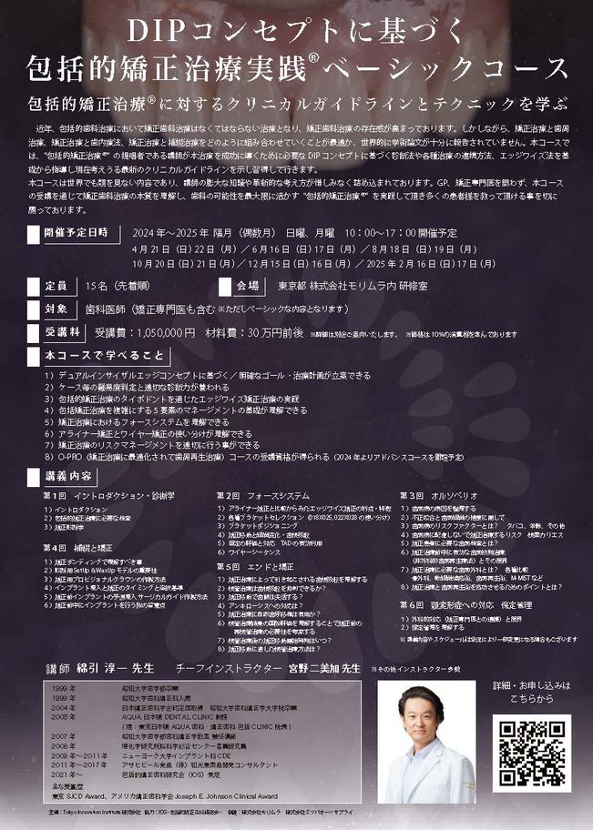 歯科医師矯正歯科インプラント・口腔外科「包括的矯正歯科 アドバンスコース 」 〔モリムラ〕
