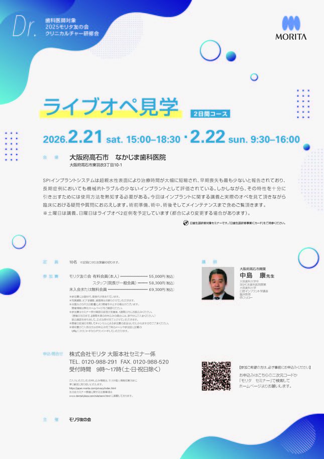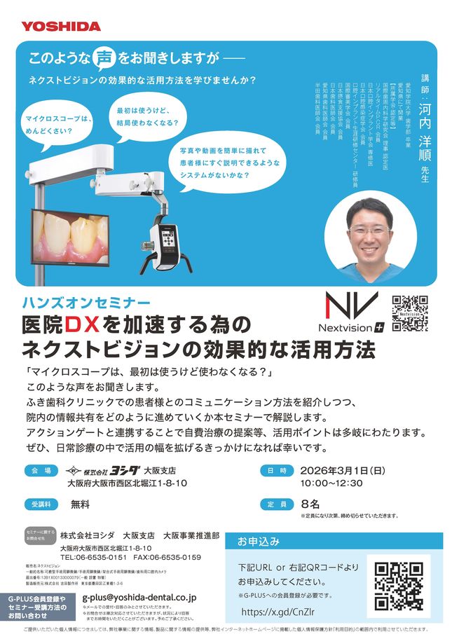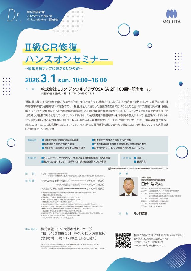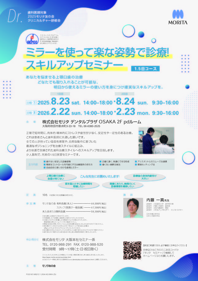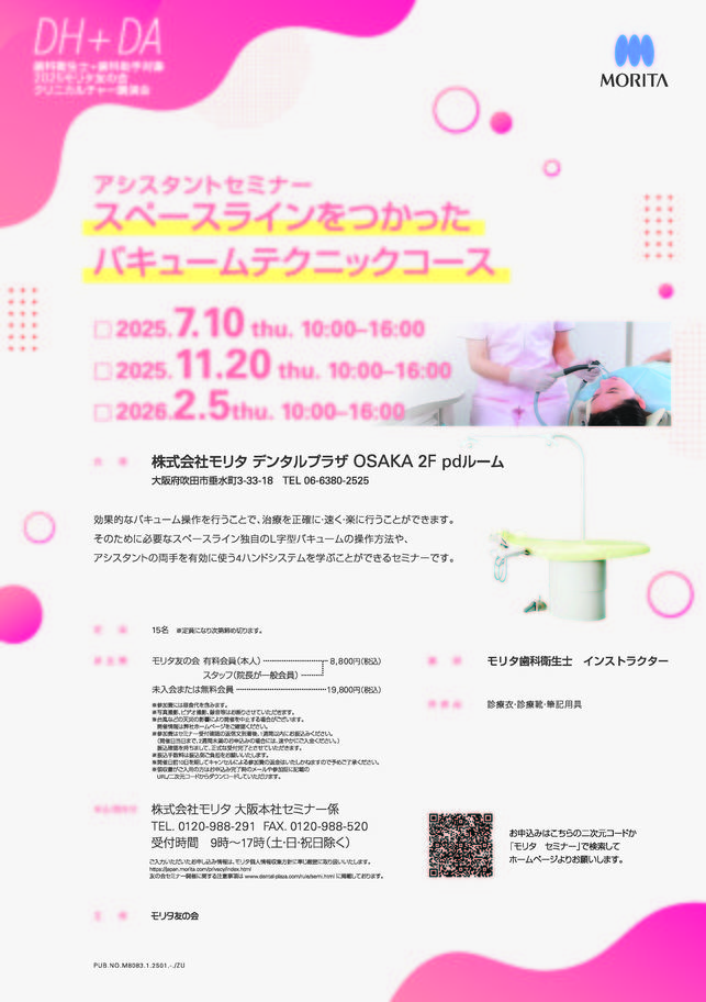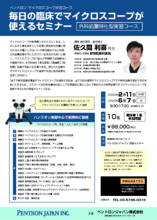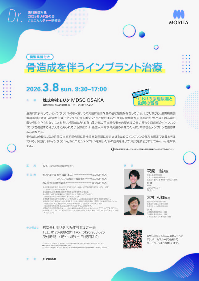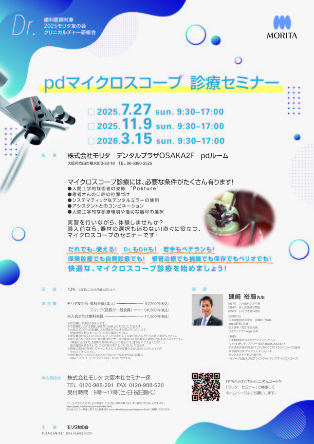 歯科医師予防歯科保存修復エンド・歯内療法咬合・補綴【大阪】pdマイクロスコープ®診療セミナー 〔モリタ〕