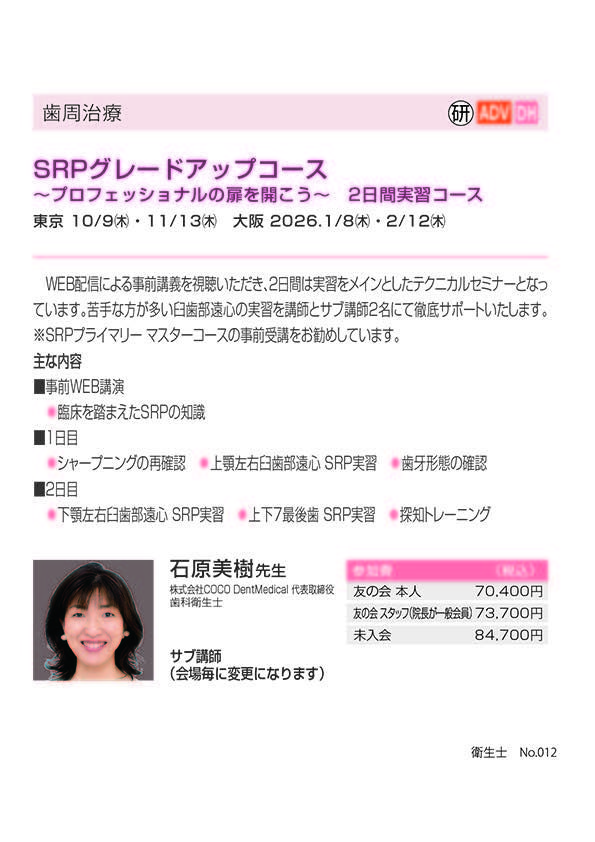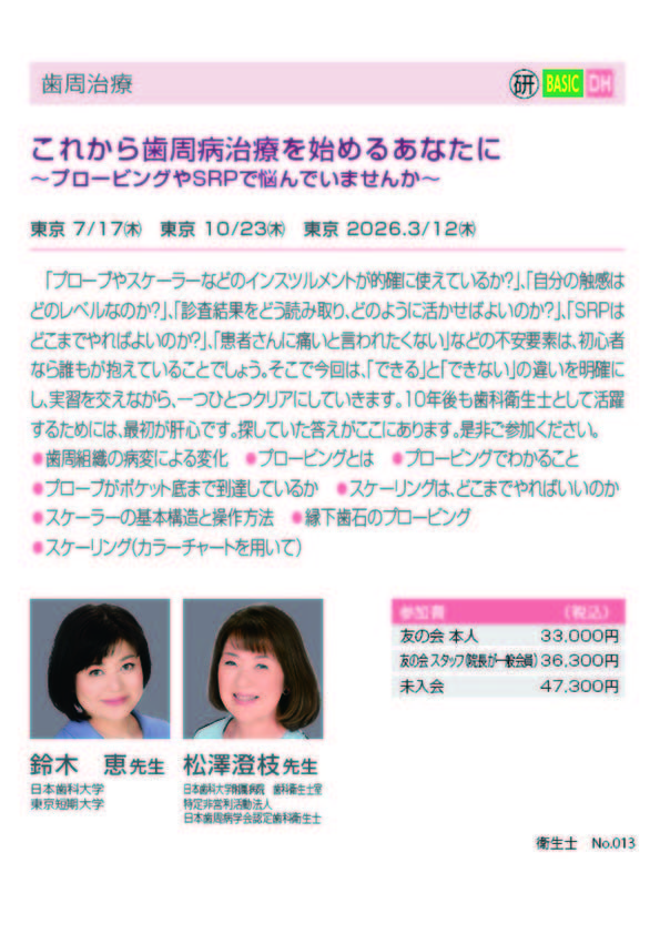 歯科衛生士予防歯科保存修復【東京】これから歯周病治療を始めるあなたに~プロービングやSRPで悩んでいませんか~〔モリタ〕