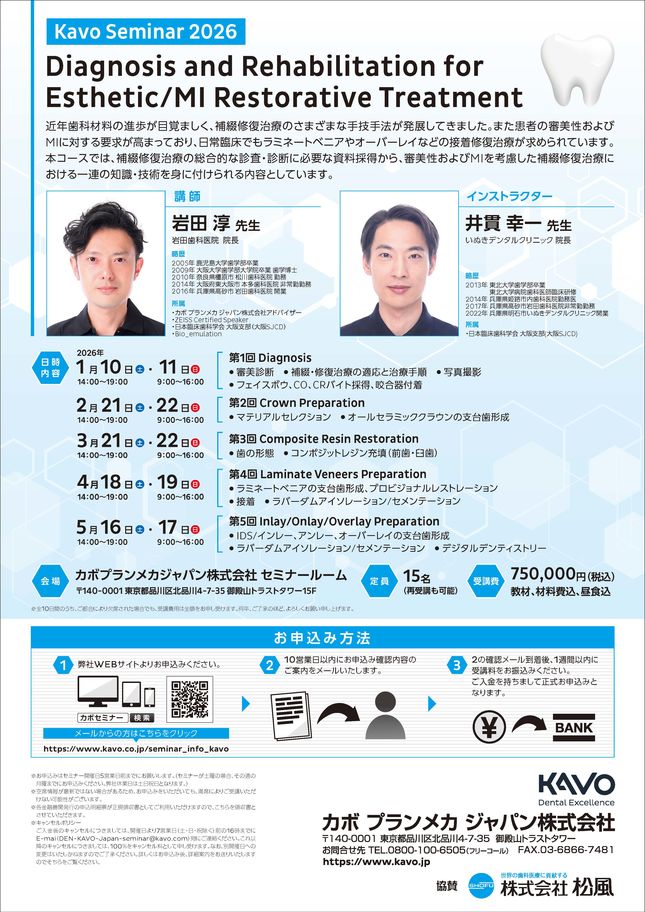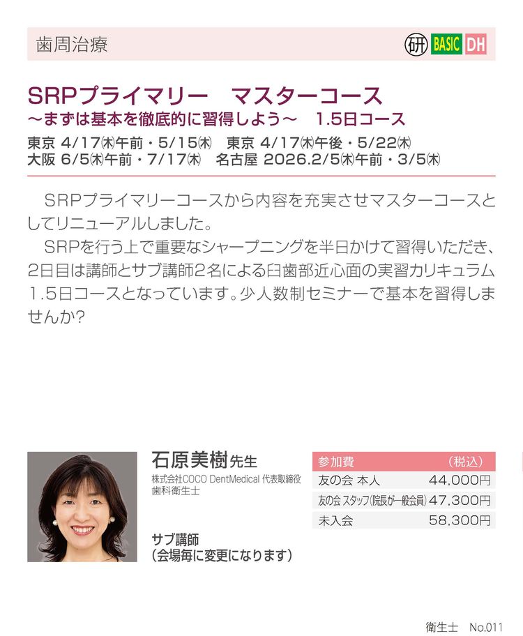 - 歯科衛生士・歯科医師ペアでご参加 22,000円 /歯科衛生士おひとりでご参加 16,500円 /セミナー教材(歯科衛生士のみ):コードイージー