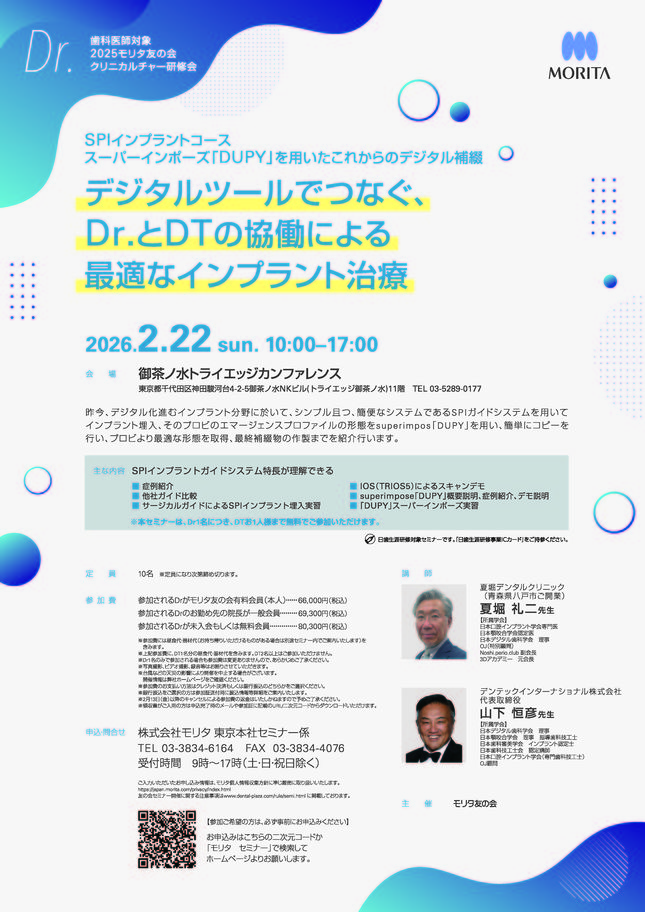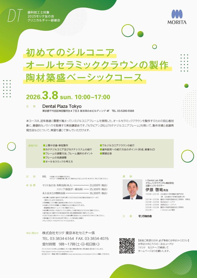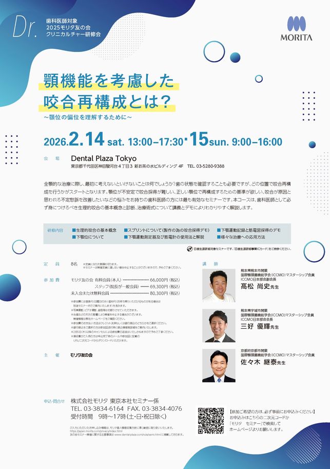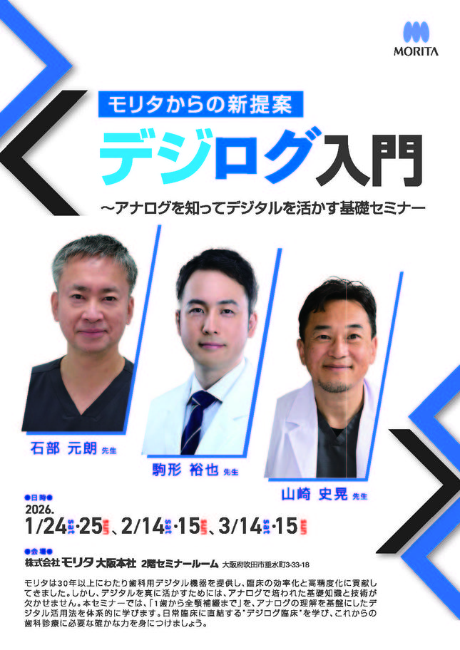歯科医師保存修復義歯・デンチャー咬合・補綴CAD/CAM・技工【大阪】モリタからの新提案「デジログ入門」 ~アナログを知ってデジタルを活かす基礎セミナー【6日間セミナー】〔モリタ〕