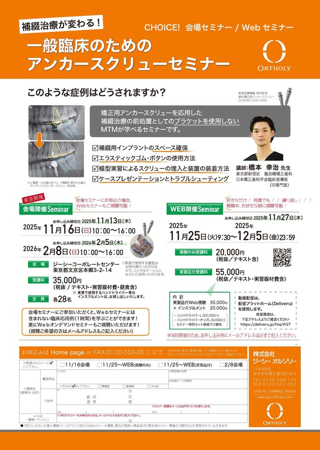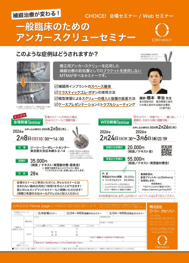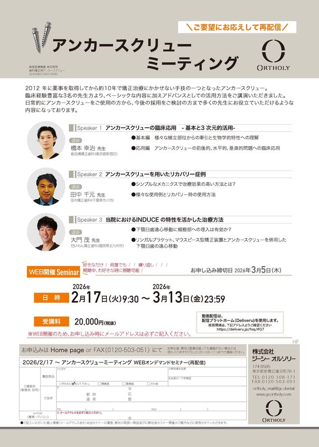 歯科医師矯正歯科【Webセミナー】アンカースクリューミーティング〔ジーシーオルソリー〕
