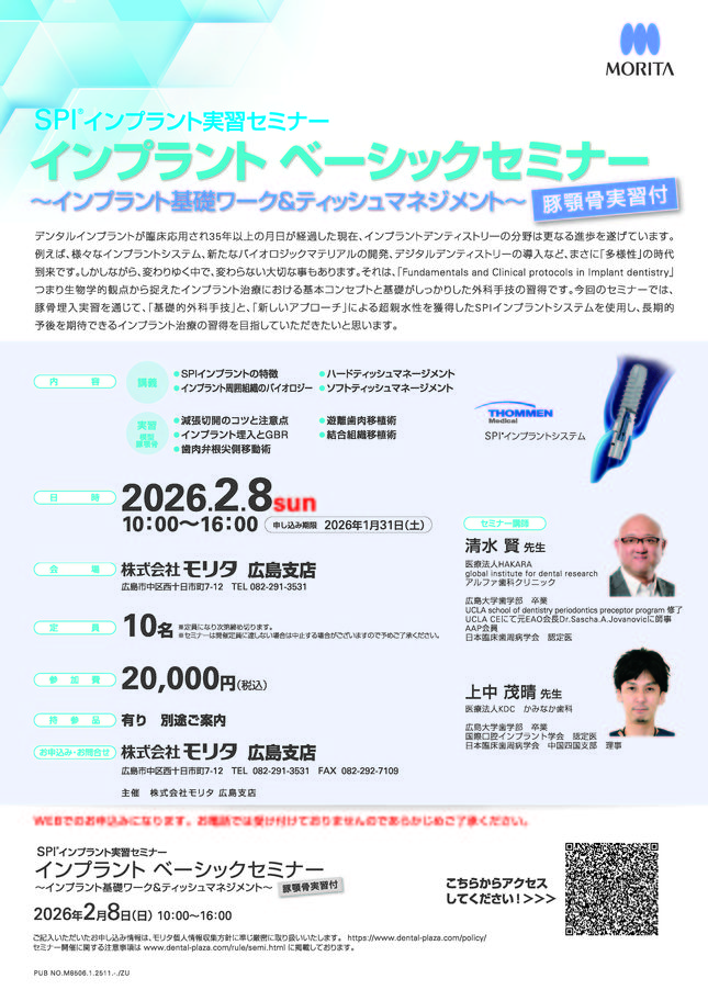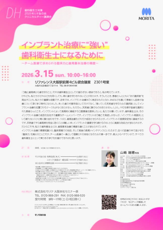 歯科衛生士インプラント・口腔外科エンド・歯内療法【東京】基礎が身につく!SRP1Dayセミナー 〔モリタ〕