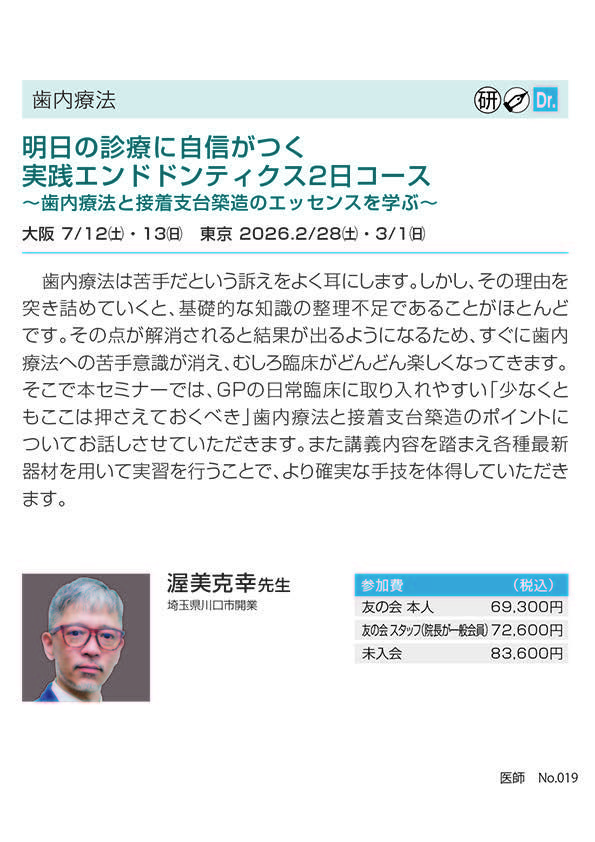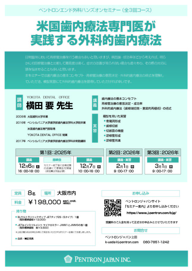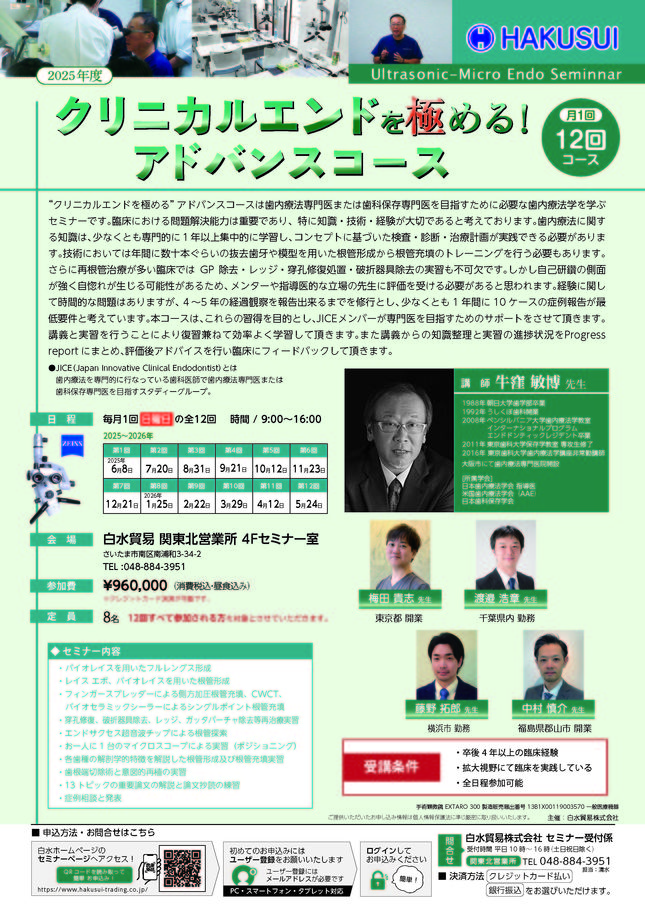 歯科医師エンド・歯内療法【大阪】第9期 クリニカルエンドを極める!12回コース 〔白水貿易〕