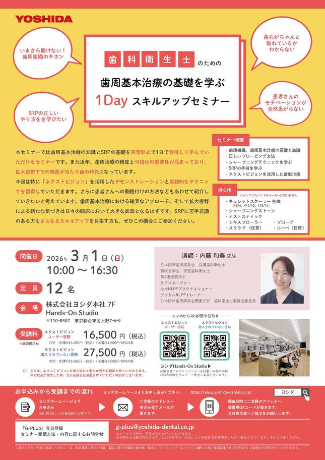 - 【歯科医師】NSK Academy 会員 27,500円 / 一般 33,000円 (教材費および消費税含む) 【歯科衛生士】NSK Academy 会員 22,000円 / 一般 27,500円 (教材費および消費税含む)
