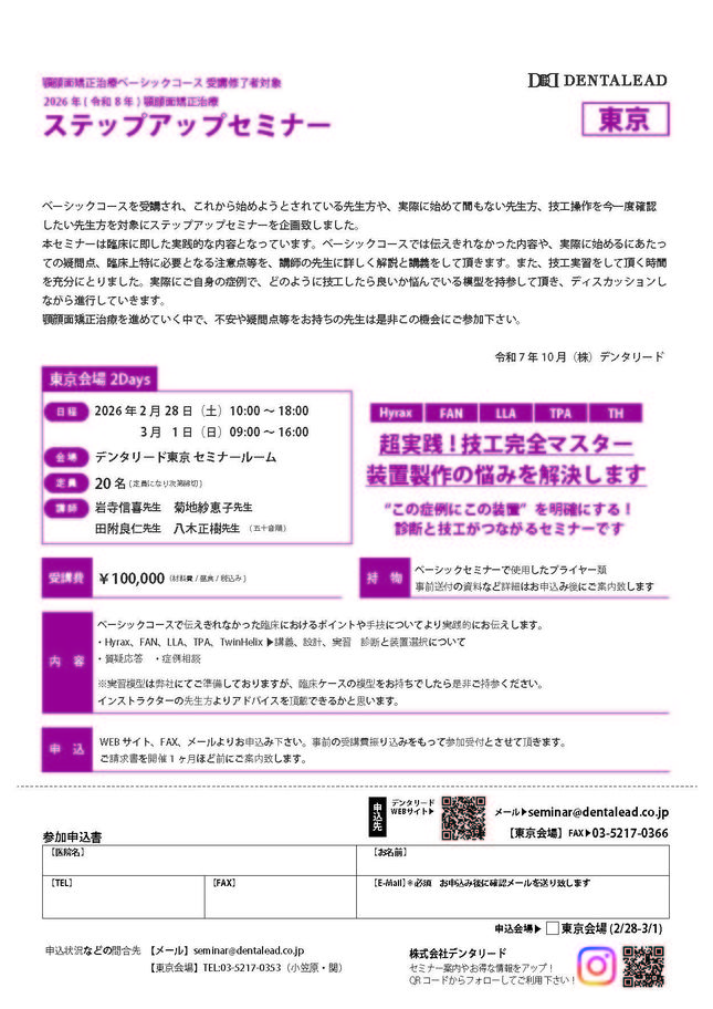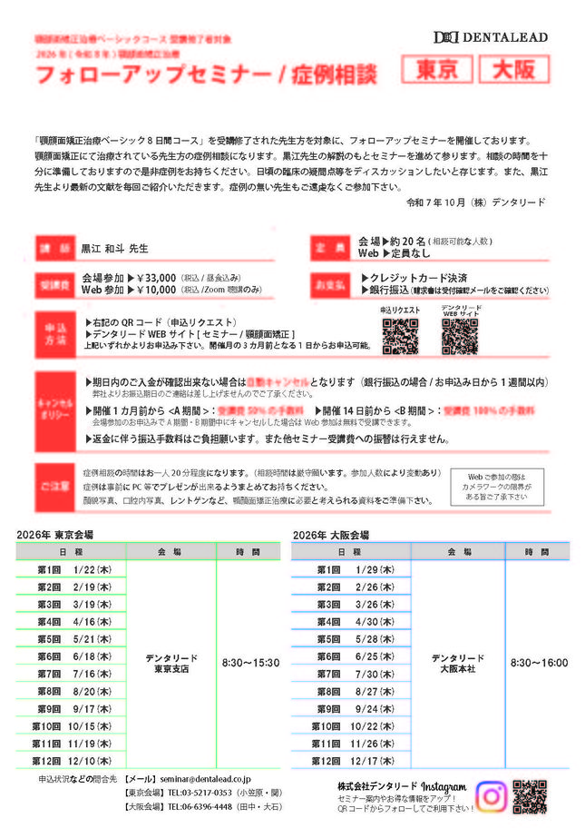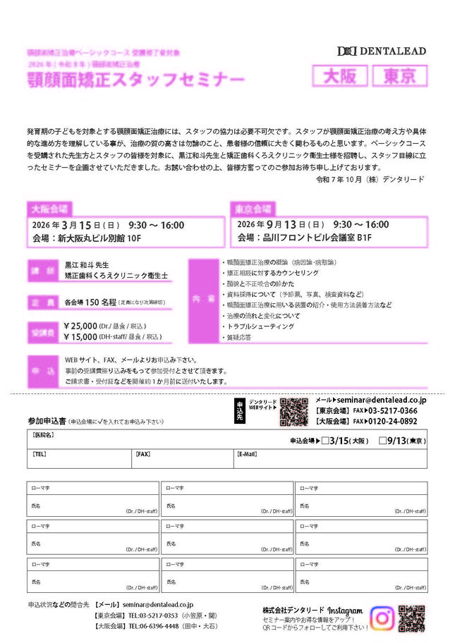 歯科医師歯科衛生士矯正歯科【大阪】2026年 顎顔面矯正 スタッフセミナー 〔デンタリード〕