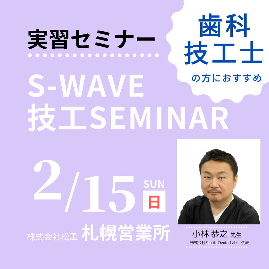 歯科医師歯科技工士エンド・歯内療法咬合・補綴S-WAVE技工セミナー 中野道場 ~デジタルデザインパーシャルコース~ 東京会場 〔松風〕