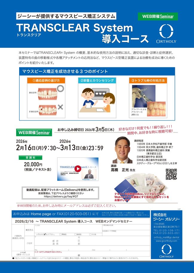 歯科医師矯正歯科【Webセミナー】 TRANSCLEAR™ System 導入コース〔ジーシーオルソリー〕