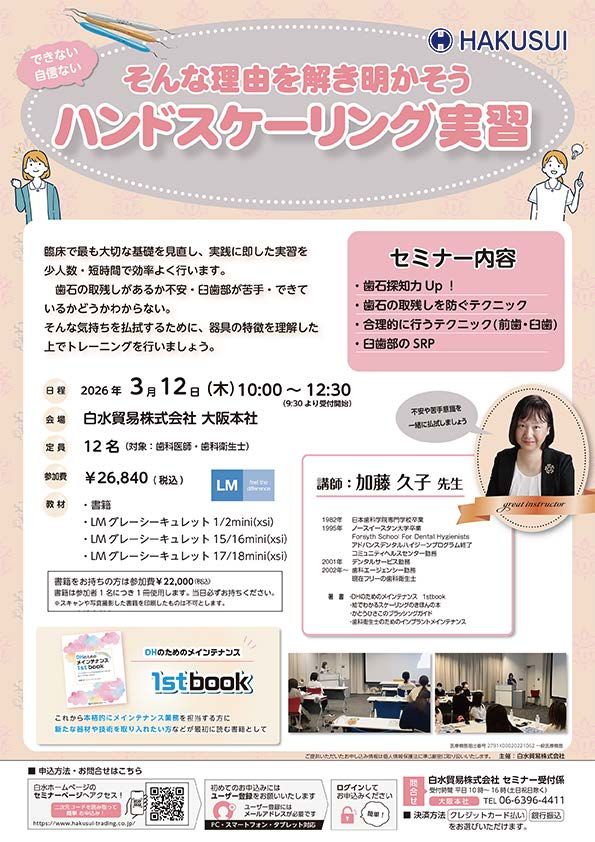 歯科衛生士予防歯科【大阪】できない 自信ない そんな理由を解き明かそう! ハンドスケーリング実習〔白水貿易〕