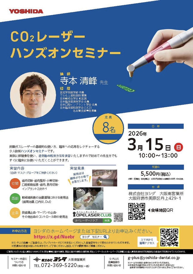歯科医師インプラント・口腔外科【大阪】CO2レーザー ハンズオンセミナー 〔ヨシダ〕
