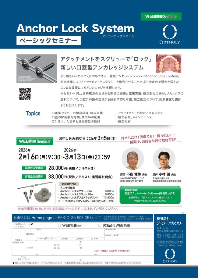歯科医師矯正歯科【Webセミナー】Anchor Lock System ベーシックセミナー〔ジーシーオルソリー〕