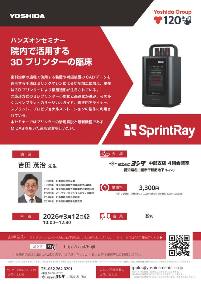 歯科医師咬合・補綴矯正歯科CAD/CAM・技工インプラント・口腔外科【名古屋】ハンズオンセミナー 院内で活用する3Dプリンターの臨床〔ヨシダ〕