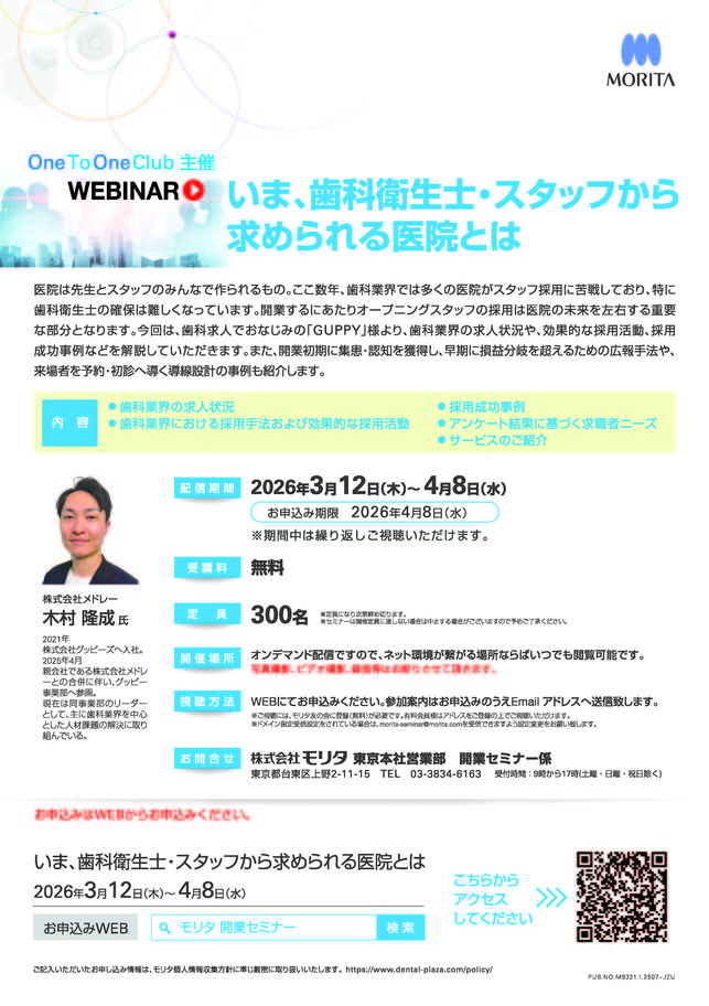 歯科医師歯科全般・その他【WEBINAR】いま、歯科衛生士・スタッフから求められる医院とは〔モリタ〕