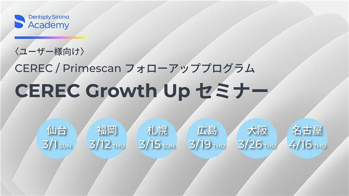 歯科医師義歯・デンチャー咬合・補綴CAD/CAM・技工【福岡】CEREC / Primescanフォローアッププログラム CEREC Growth Upセミナー〔デンツプライシロナ〕