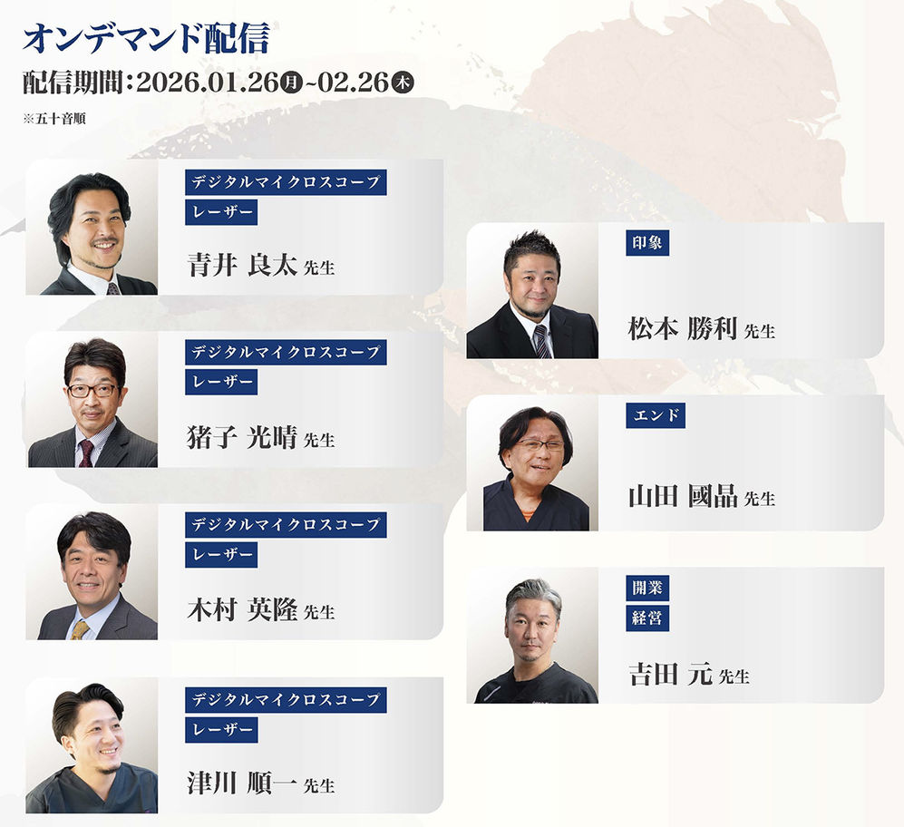 予防・レーザー・マネジメントなど多岐にわたるテーマで7名の演者にご登壇いただきます。